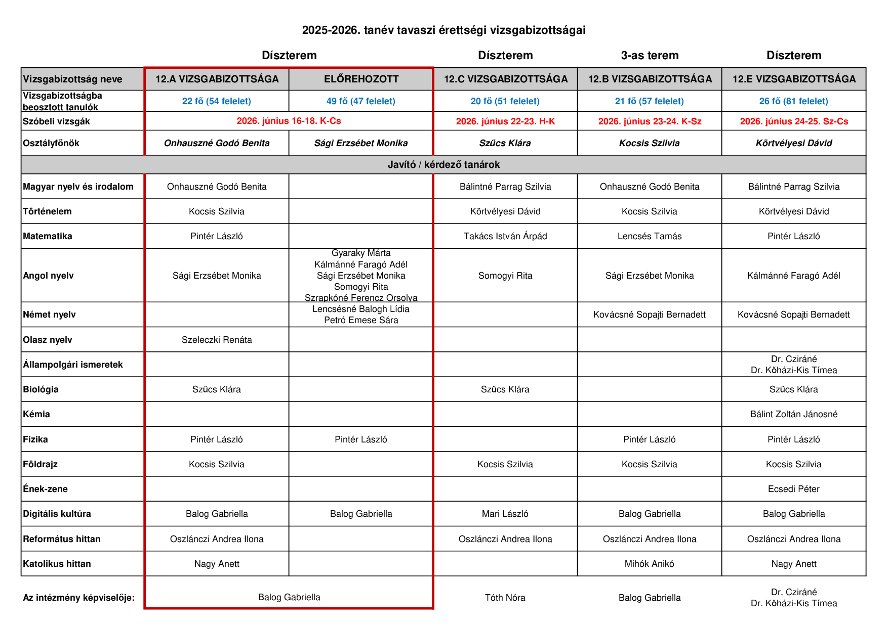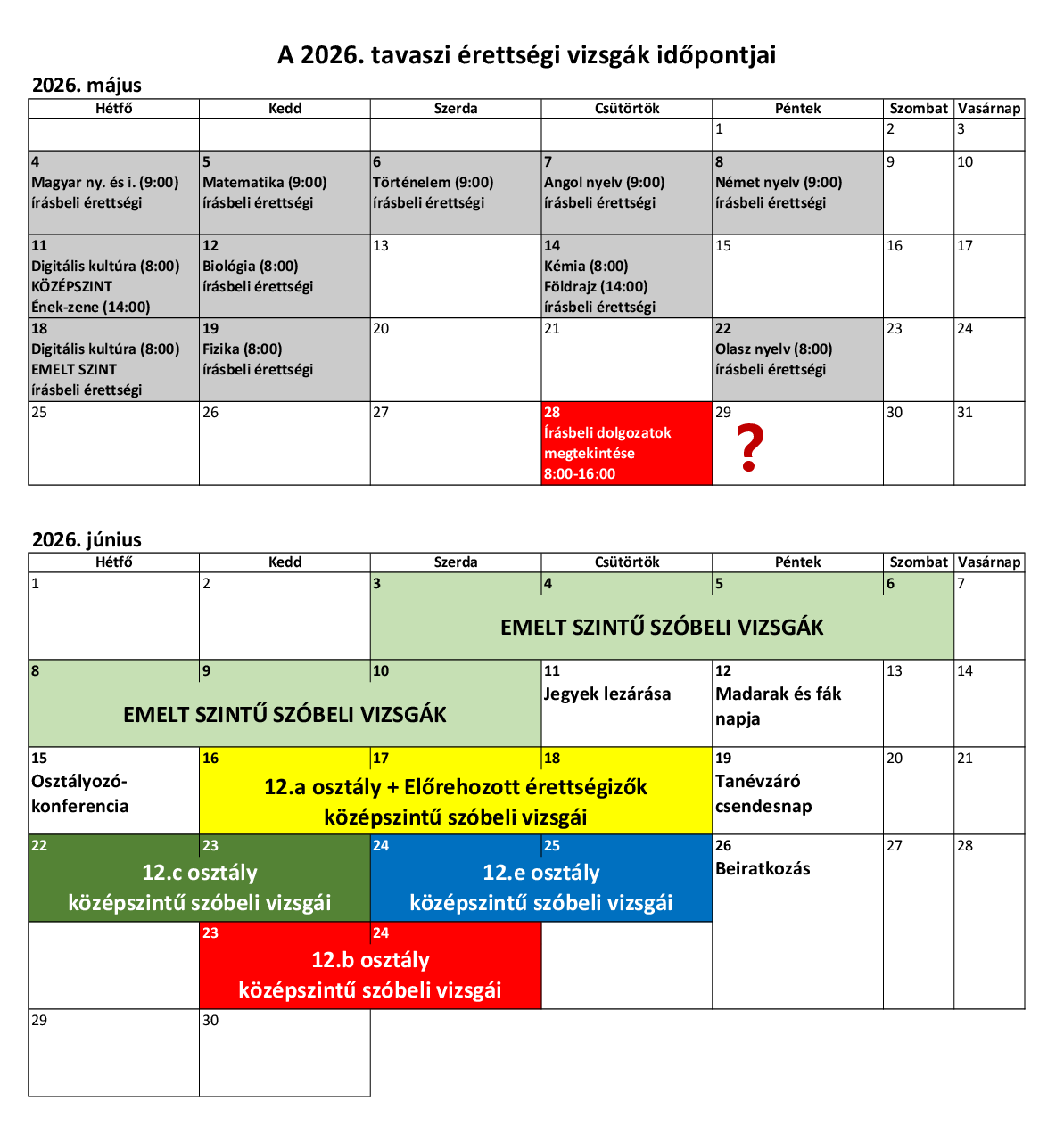 Érettségi időpontok és vizsgabizottságok 2026